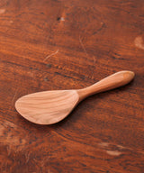 厳島神社で知られる広島県・宮島では、杓文字(しゃもじ)のことを、杓子(しゃくし)と呼びます。持ち手部分を丸くした木のしゃもじはやわらかく手にフィットするような握りやすさが特徴です。先端部分はご飯を集めやすい角度に仕上げられています。原材料には同じ広島県内産のヤマザクラを使用。堅く弾力がある木材で長期間の使用に耐えます。また、使うほどに色は赤みを増し味わい深くなります。経年変化も楽しみなアイテムです。